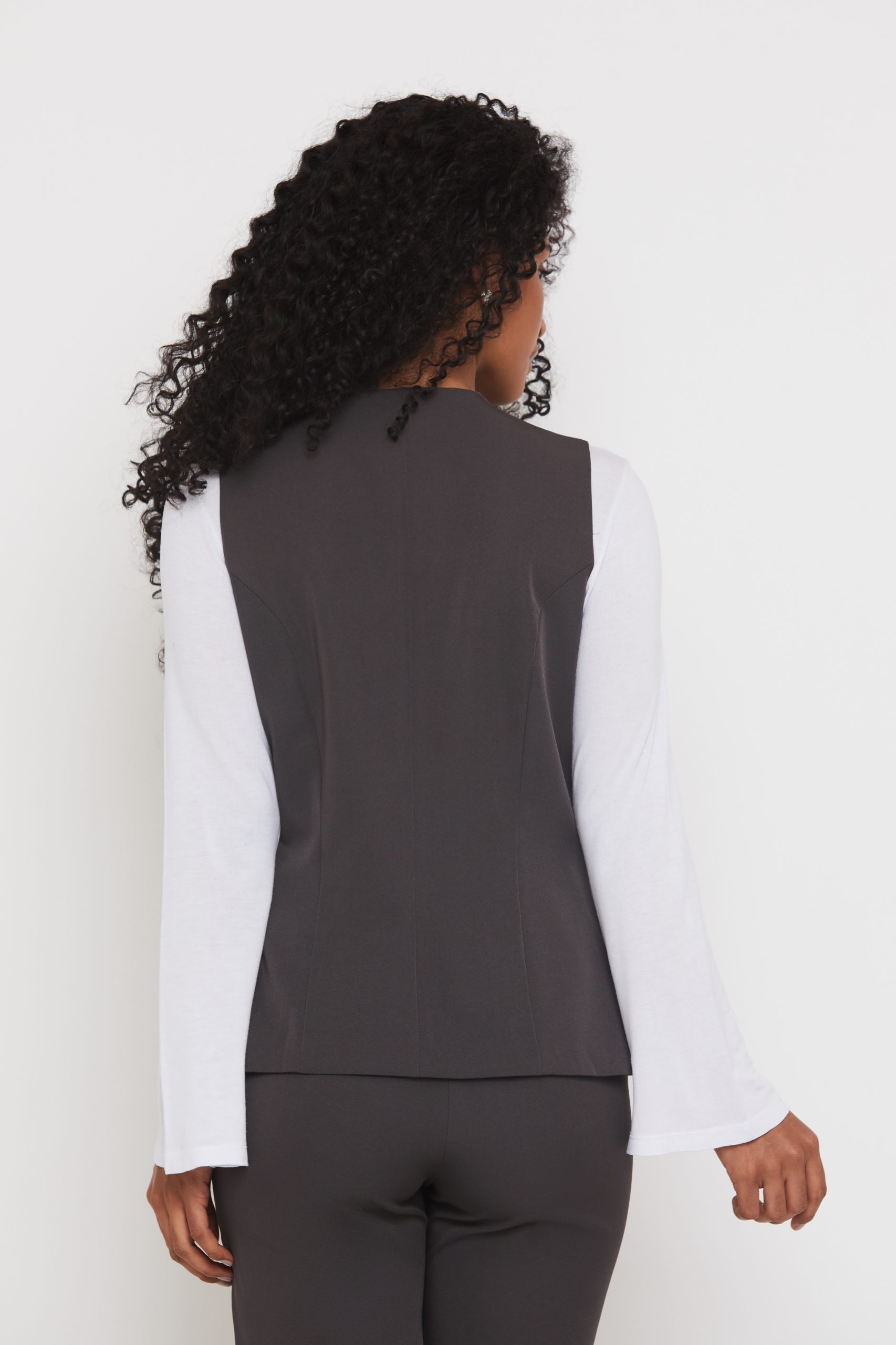 Colete social feminino confeccionado em twoway.
